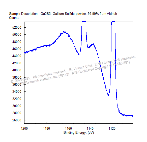 Ga (2p) Spectrum from Ga2S3 – expanded Freshly exposed bulk, Flood gun is ON, C (1s) BE = 285.0 eV, Ag FWHM = 0.75 eV |