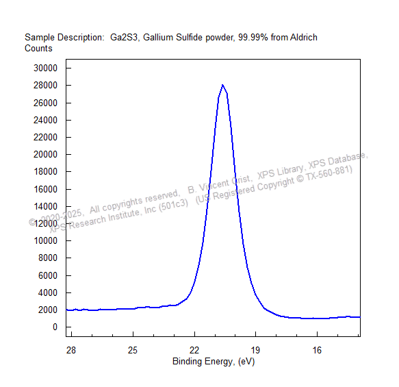 Ga (3d) Spectrum from Ga2S3 – Peak-Fit Freshly exposed bulk, Flood gun is ON, C (1s) BE = 285.0 eV, Ag FWHM = 0.75 eV |