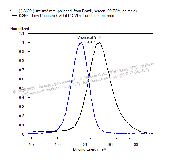 Si (2p) Spectra – Overlay of SiO2 and Si3N4