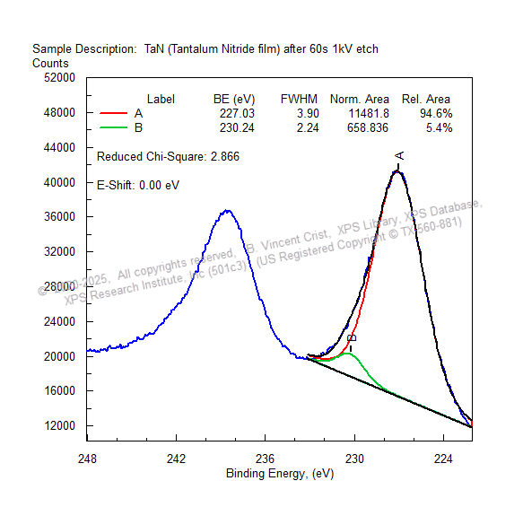 Ta (4d) Spectrum from TaN – Peak-Fit Freshly exposed bulk, Flood gun is OFF (conductive), C (1s) BE = 284.99 eV, Ag FWHM = 0.75 eV |