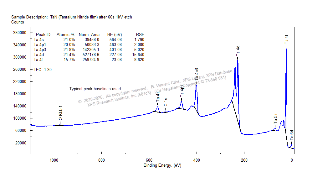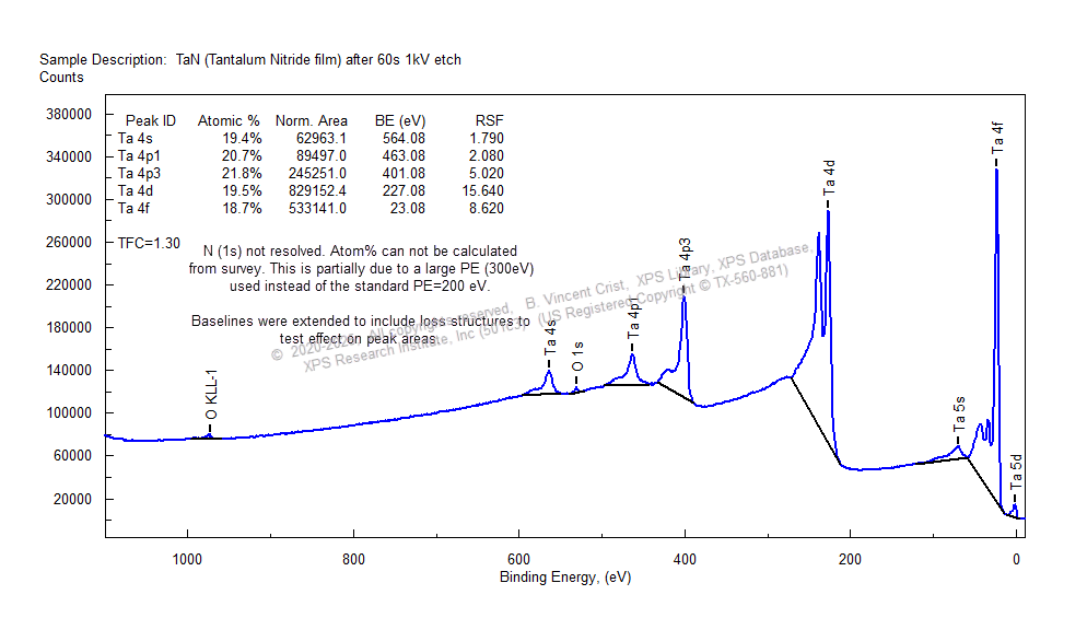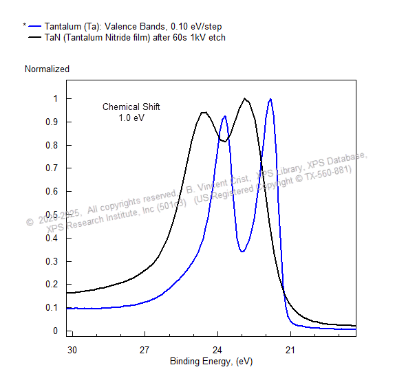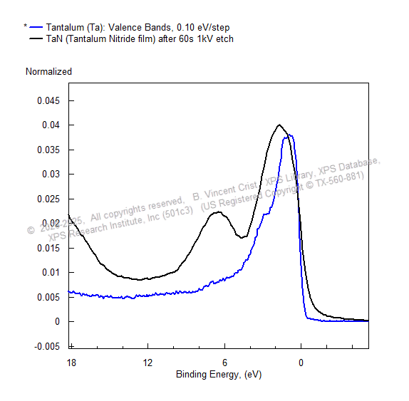 | N | 7 | N-Ta | 398.2 eV | 398.3 eV | 285.0 eV | The XPS Library |