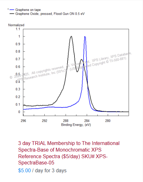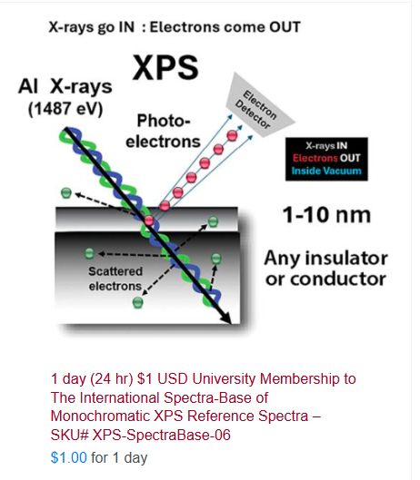 - Carbon (1s) and O (1s) spectra (or F (1s), S (2p), N (1s), P (2p), Cl (2p), Br (3d), I (4d), Se (3d), Te (4d) etc.)